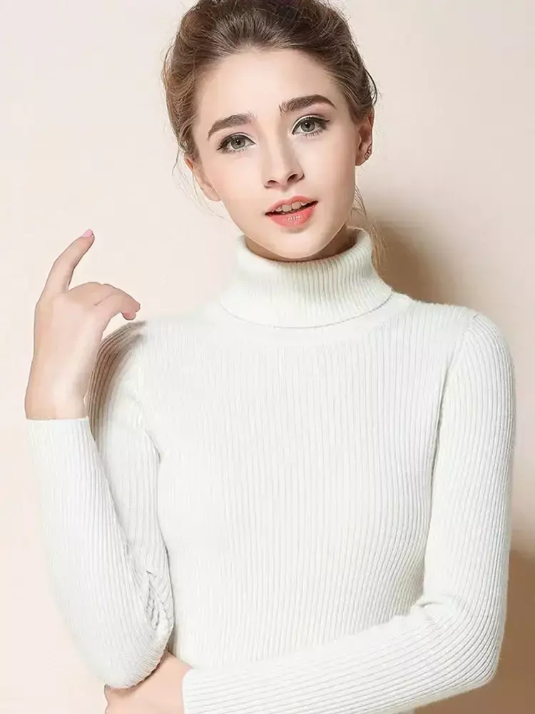 Aposte no conforto e estilo com a Blusa Feminina de Malha Listrada com Gola Alta.